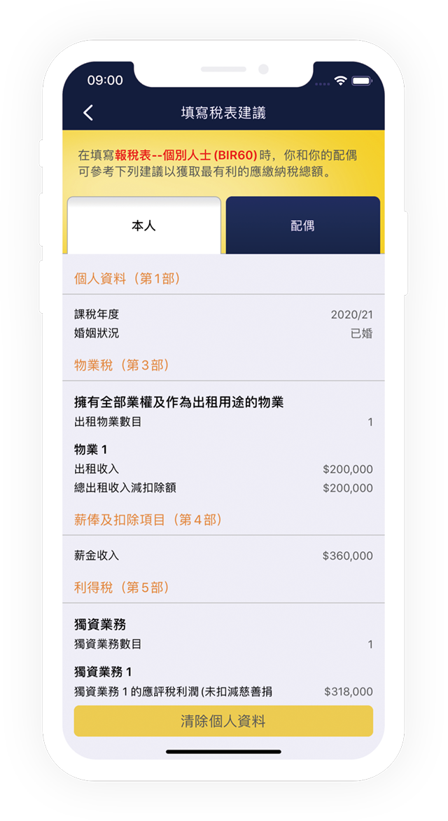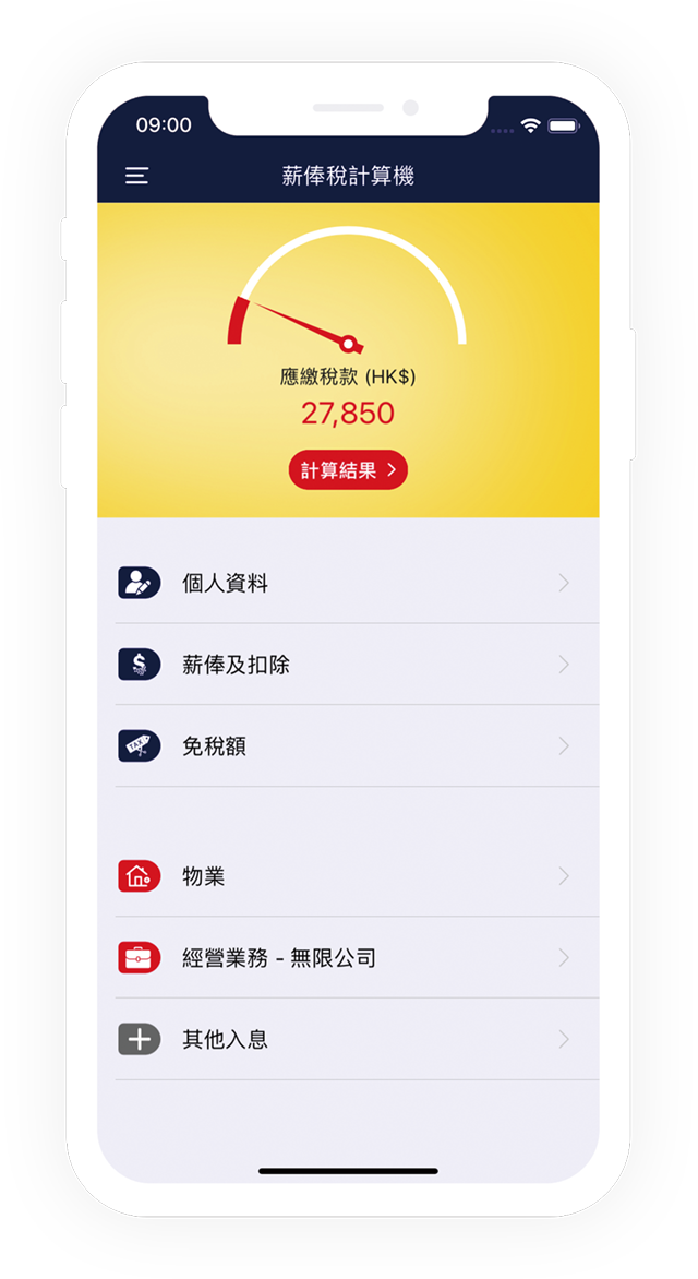 計算三類稅項:薪俸稅、物業稅、利得稅(無限公司)